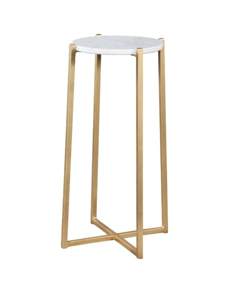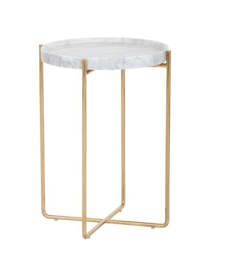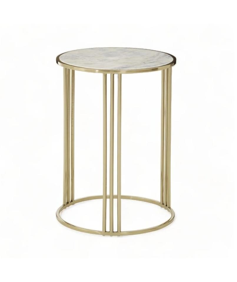 Table d'appoint ronde moderne avec plateau en marbre et structure en métal doré en forme de X pour la décoration de la maison Or + Blanc
