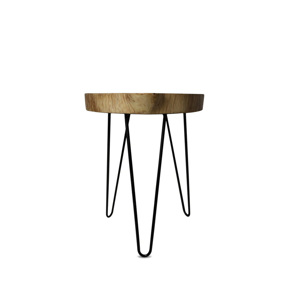 Table d'appoint ronde moderne avec pieds en fer, bois d'Indonésie, design minimaliste, écologique, Gubuk Bali pour la maison, salon