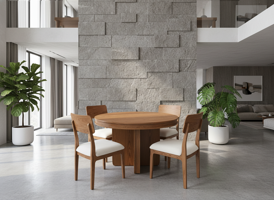 Ensemble de table à manger ronde moderne en frêne massif avec 4 chaises - Durable, facile à nettoyer, léger