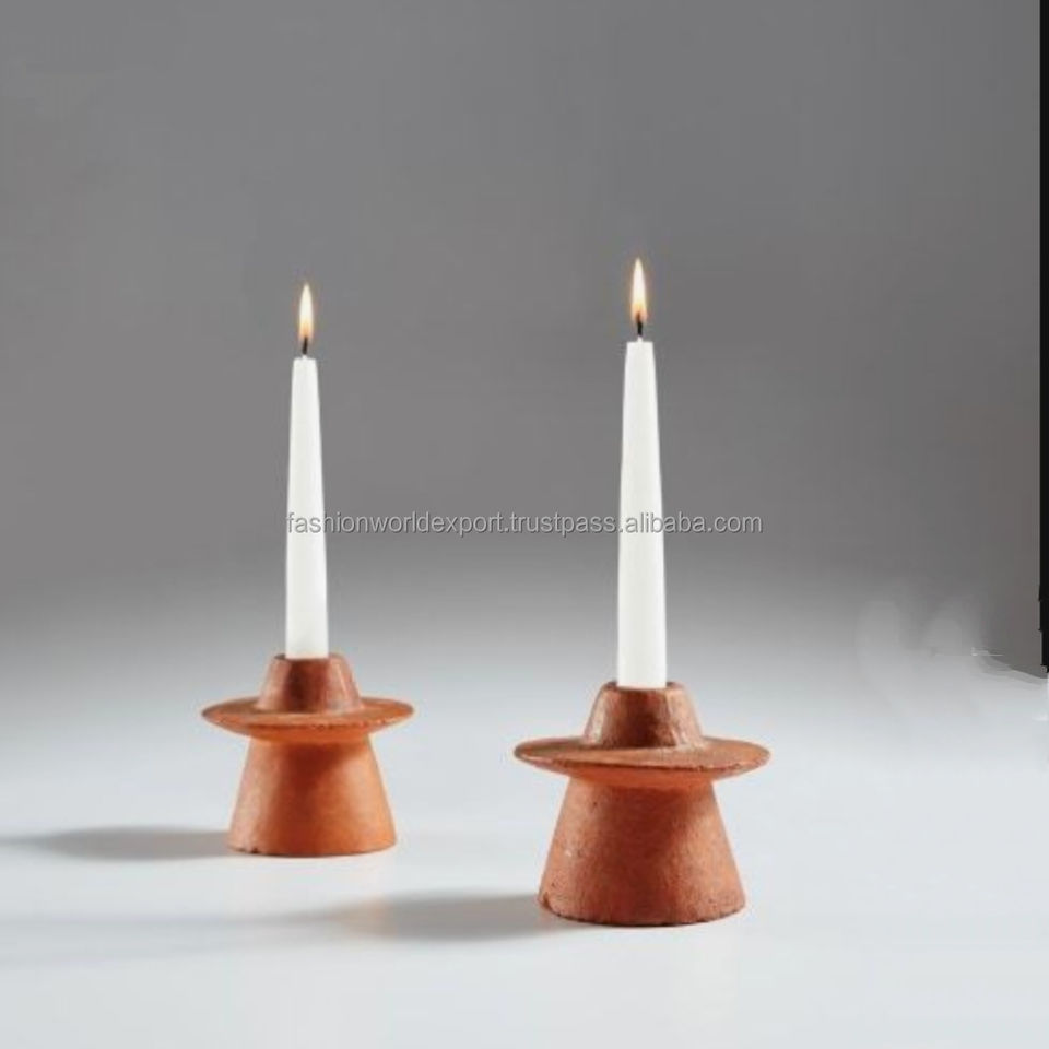 Ensemble de bougeoirs arrondis modernes en terre cuite Paire de bougeoirs sculpturaux de style galet pour intérieurs minimalistes et intérieurs de maison