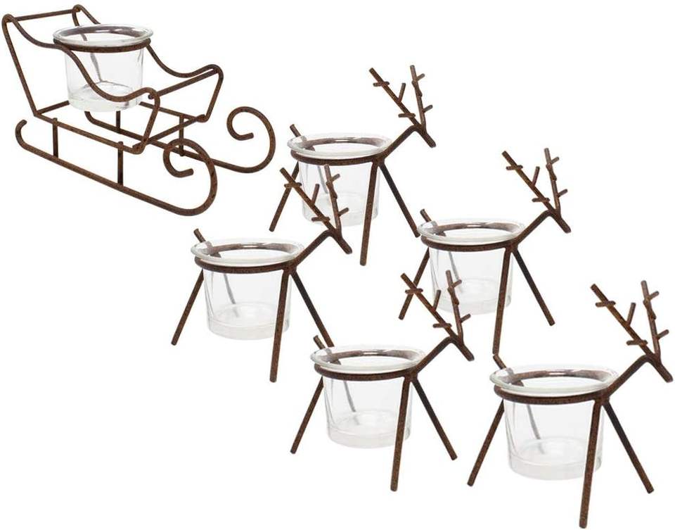 Lot de 6 chandeliers en métal renne rustique moderne support de table de Noël et pièce maîtresse décorative Inc India WB