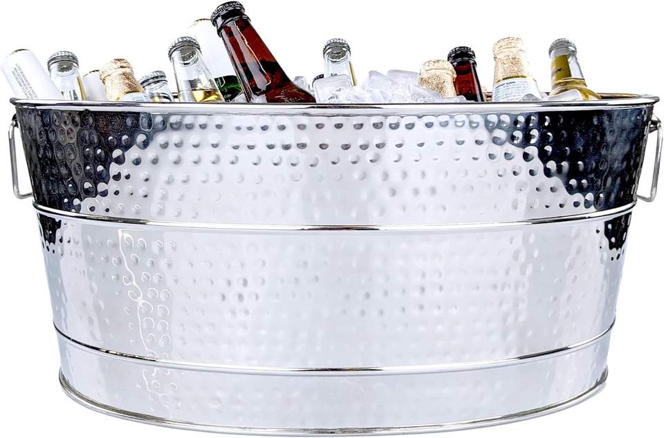 Design rustique moderne Seau en acier inoxydable de 25 pintes Grand refroidisseur de glace en métal pour boissons Capacité de 30 bouteilles pour fêtes Cadeaux