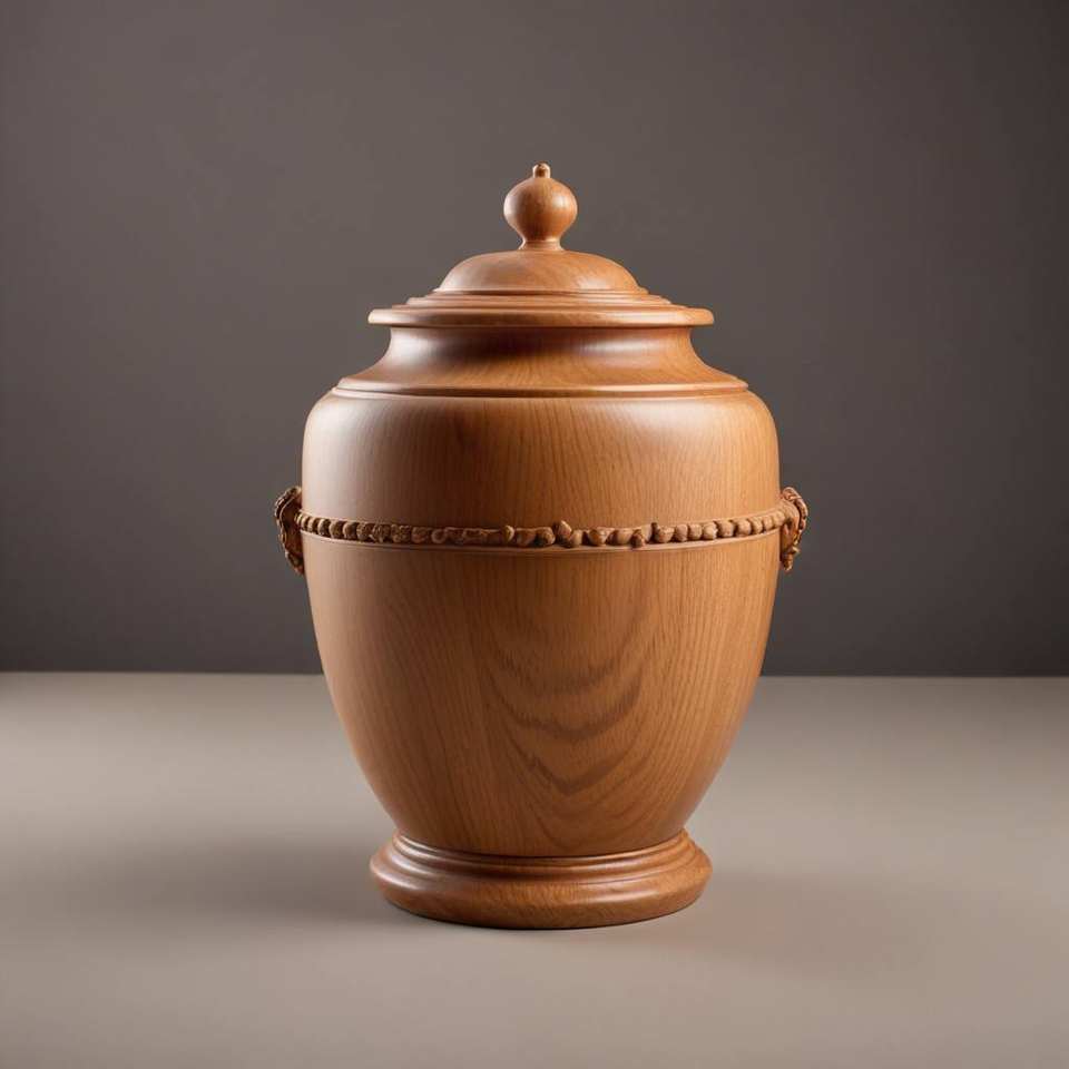 Urne funéraire rustique moderne en bois mélangé avec des variations de couleur naturelles et un couvercle artisanal