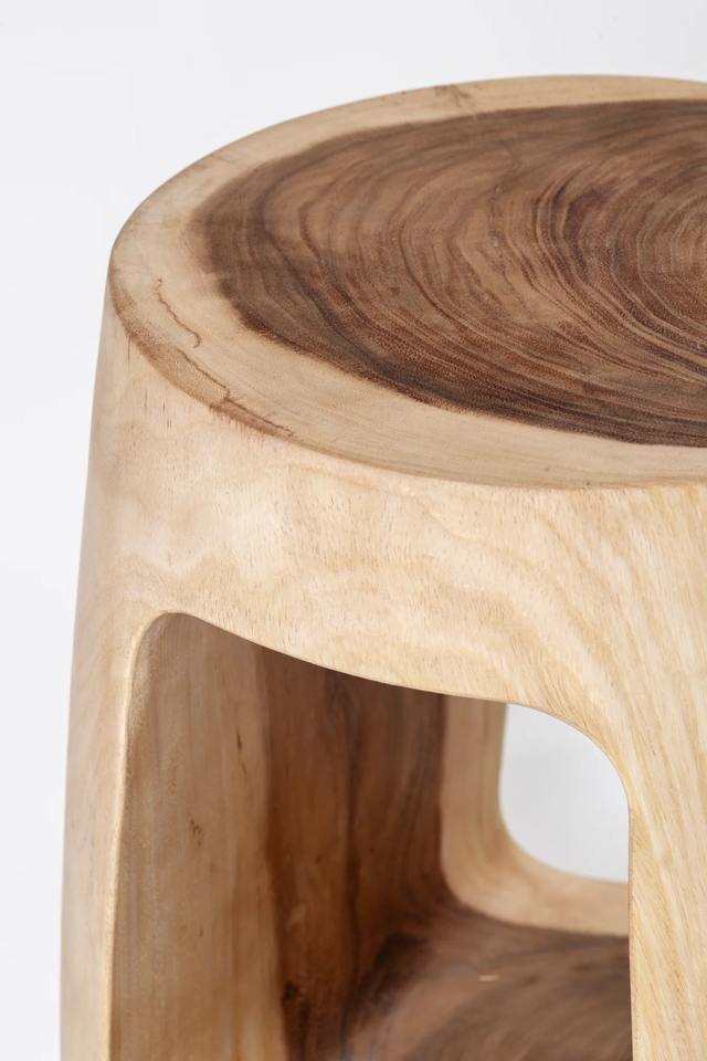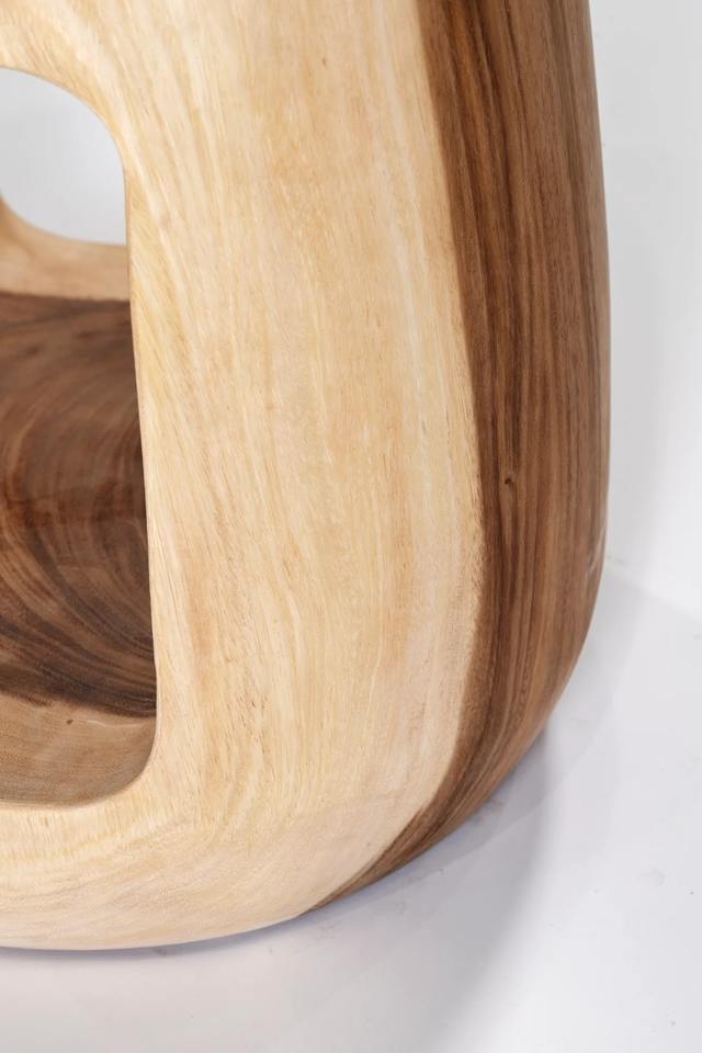 Tabouret sculptural rustique moderne en bois massif avec assise contemporaine en bois pour salon, hôtel, mobilier d'hôtellerie
