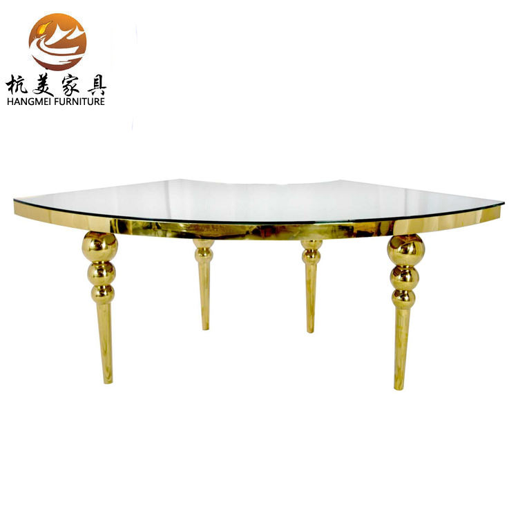 Table de mariage moderne en forme de S avec cadre en acier inoxydable doré en forme de S pour meubles de salle à manger pour la maison ou l'hôtel