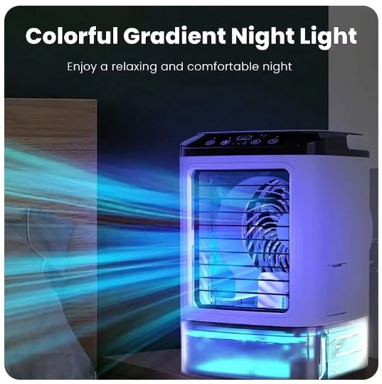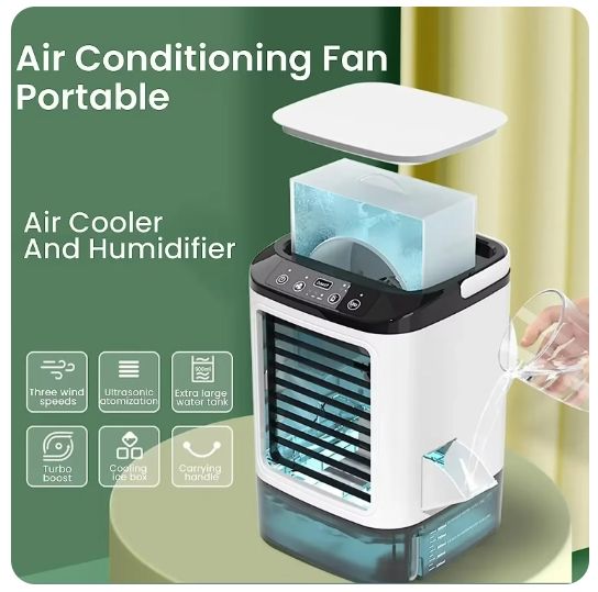 Ventilateur de climatisation portable moderne et sûr, double pulvérisation ultrasonique, 3 vitesses, silencieux, avec lumière nocturne électrique