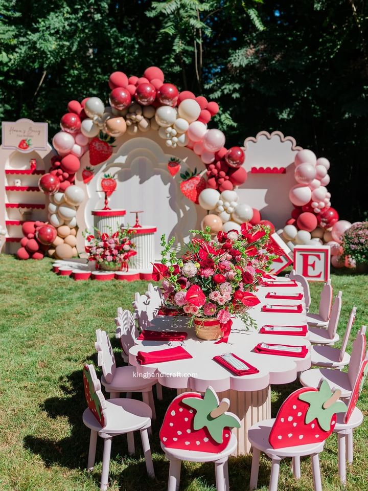 Chaise d'enfant moderne et sécurisée pour l'extérieur, décorative, en forme de fraise, pour les fêtes d'anniversaire et les événements sur le thème des bonbons, fournisseur en gros OEM