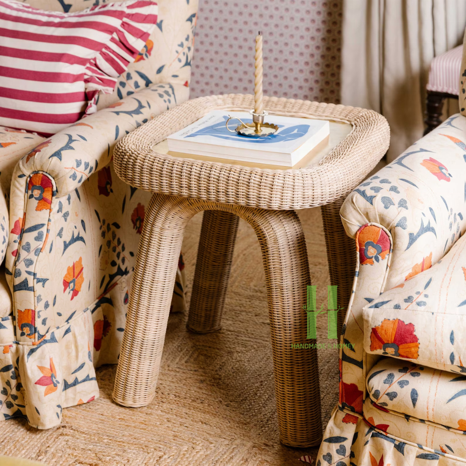 Table basse moderne festonnée Table basse en rotin de luxe Table d'appoint en rotin tissé pour la décoration de chambre personnalisée dans l'artisanat HNH