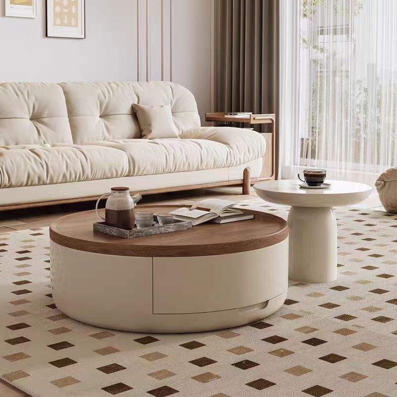 Table basse et thé scandinave moderne en noyer avec tiroir Table basse en bois massif plaqué noyer rangement haut de gamme