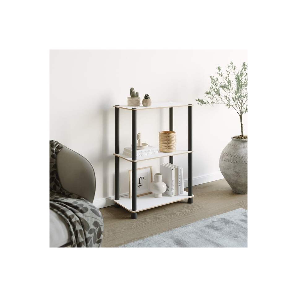 Armoire à étagères ouvertes en MDF blanc scandinave moderne avec plusieurs tiroirs, rangement élégant pour la salle de bain, utilisation décorative en cuisine