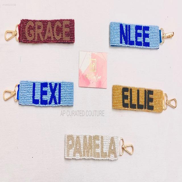 Porte-clés modernes brodés de perles de rocaille pour les jours de match, porte-clés de sac brodé de perles de rocaille fait main de qualité supérieure pour le voyage