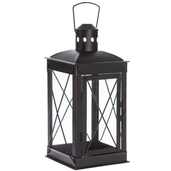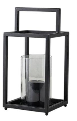 Lanterne moderne en métal et verre texturé avec finition noire mate, lanternes à bougies en métal pour la décoration extérieure de la maison, fabrication artisanale