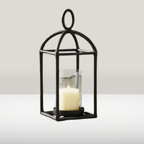 Lanterne à bougie moderne, portable, faite à la main, suspendue, en métal et verre, finition noire brillante, décoration d'intérieur et de Noël