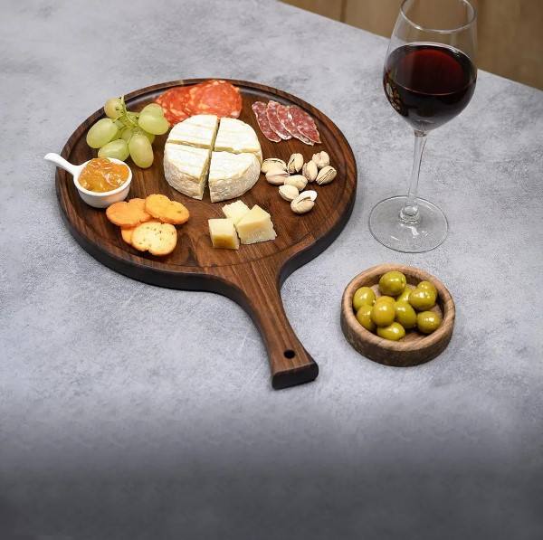 Plateau de service moderne avec manche en bois de noyer Planche à découper polyvalente en bois de charcuterie Planches en bois durables Chargeur en plastique