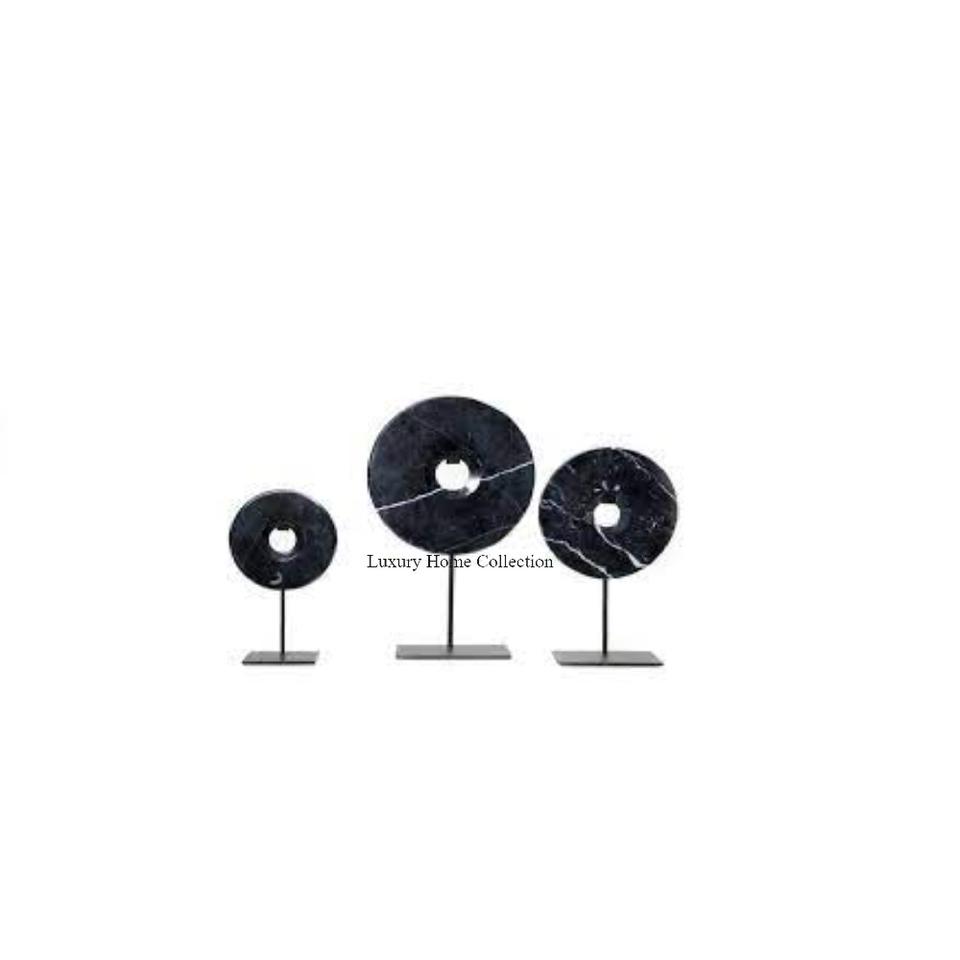 Ensemble moderne de 3 sculptures décoratives couleur noire forme ronde conception unique objets artisanaux et accessoires décoratifs