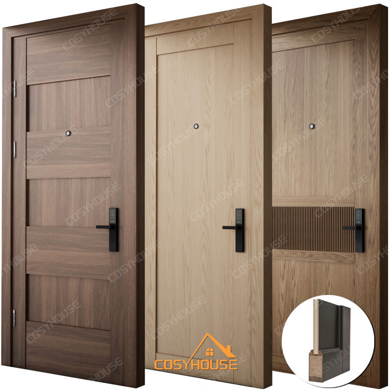 Porte intérieure moderne à panneaux plats en bois massif insonorisée et ignifuge pour hôpital, hôtel, villa, appartement, chambre à coucher
