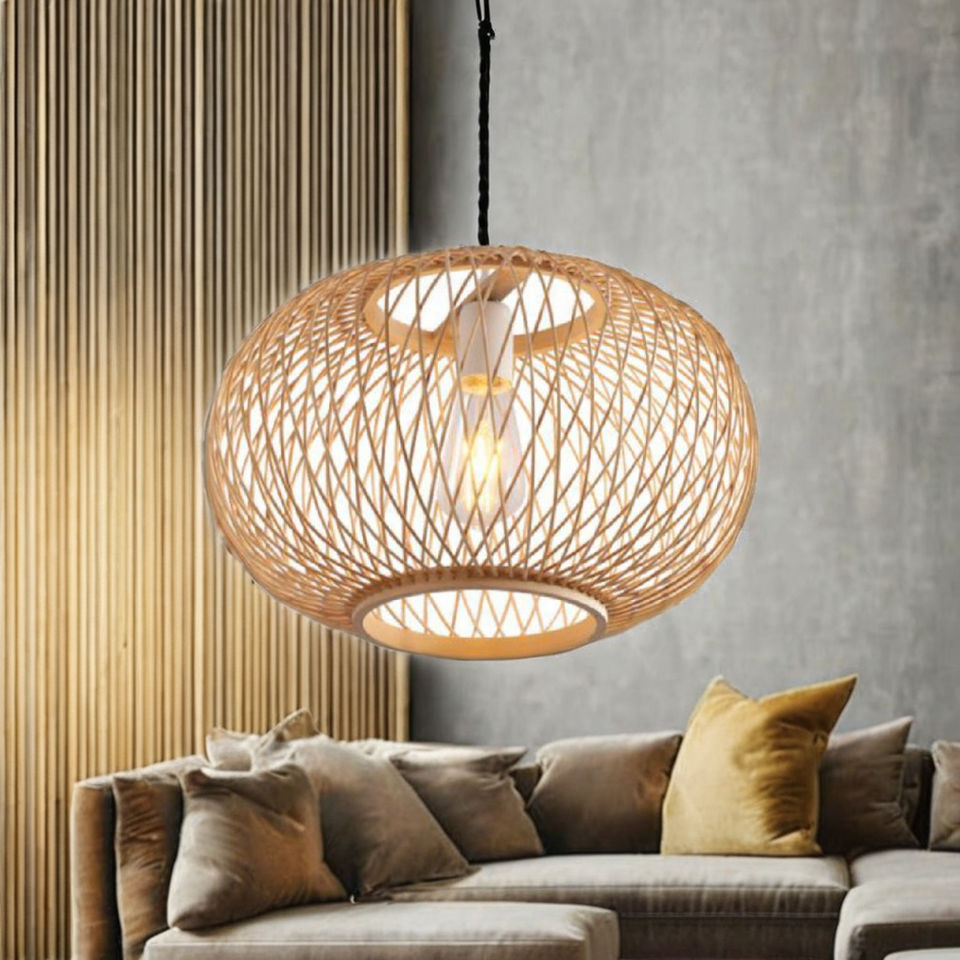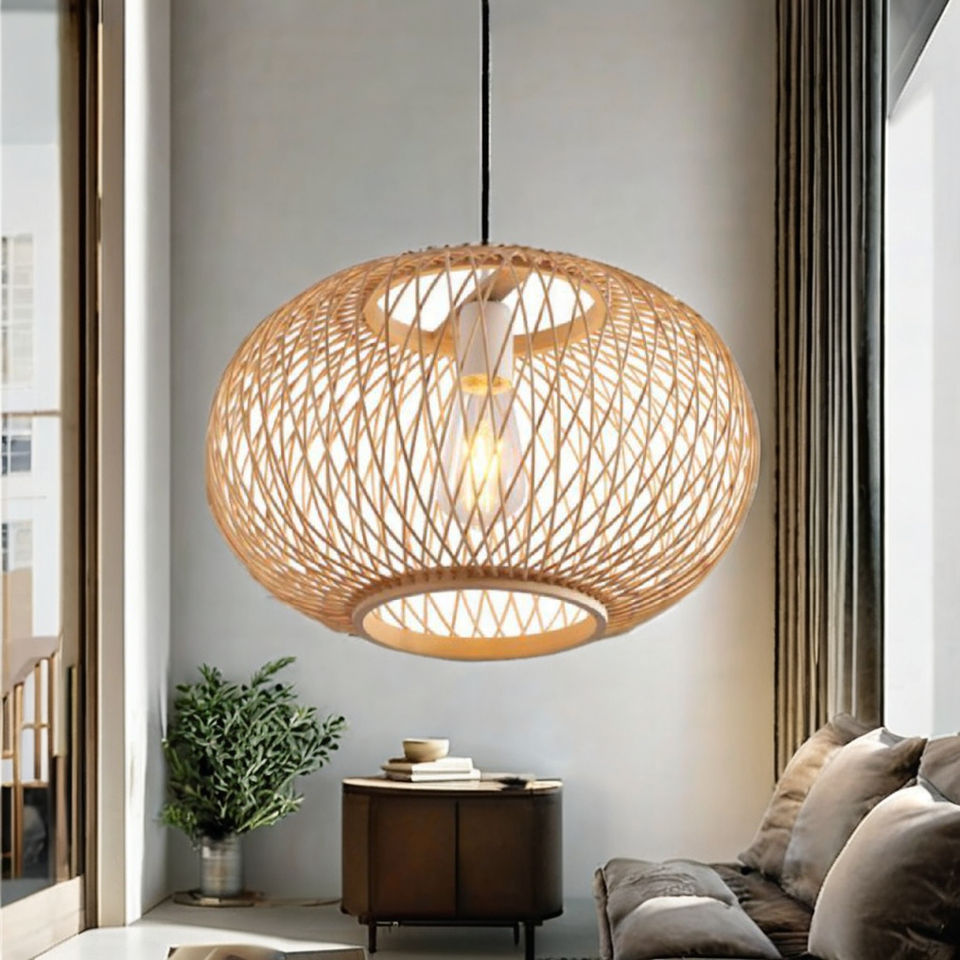 Suspension moderne Shell avec lumière dirigée vers le bas Matériau en bambou pour lire à manger ou douce lueur de soirée