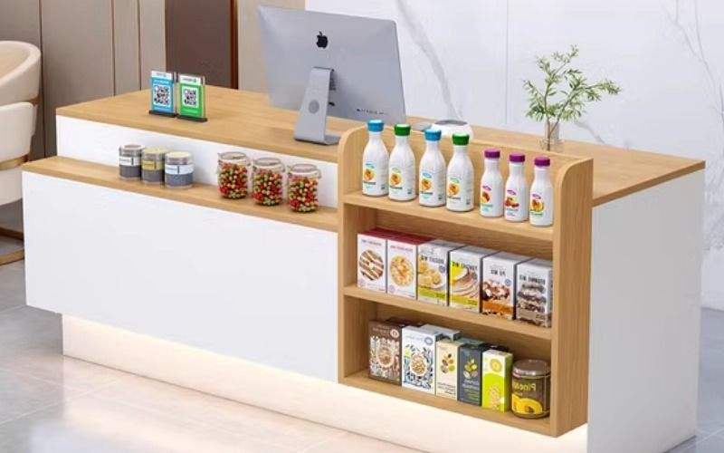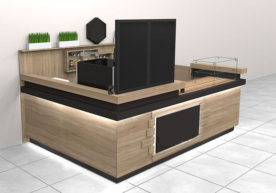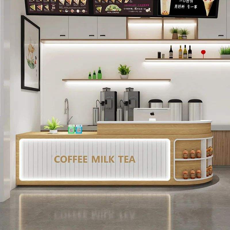 Conception de comptoir de bar de café de centre commercial moderne Kiosque personnalisé Table de stand de restaurant Coin salon Mobilier de café sur mesure