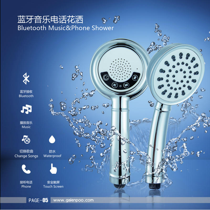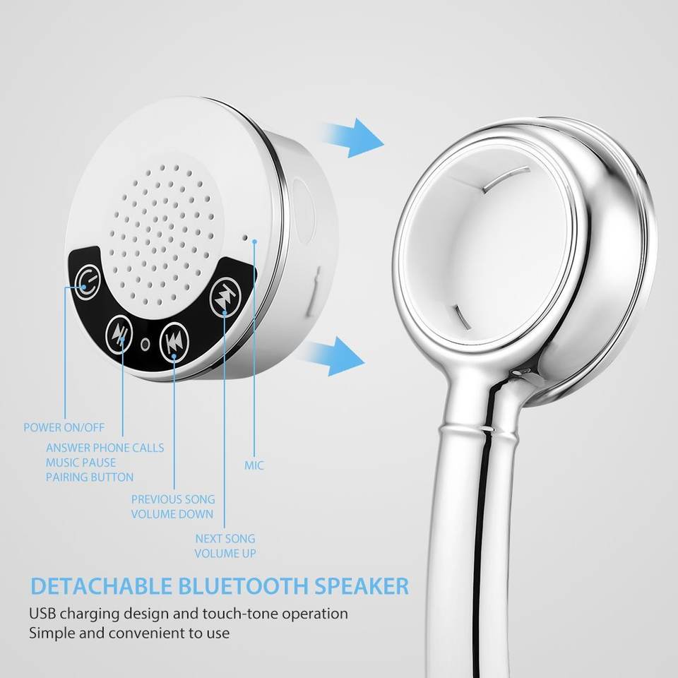 Pommeau de douche moderne étanche sans fil Bluetooth haut-parleur musique jouant téléphone pommeau de douche à main
