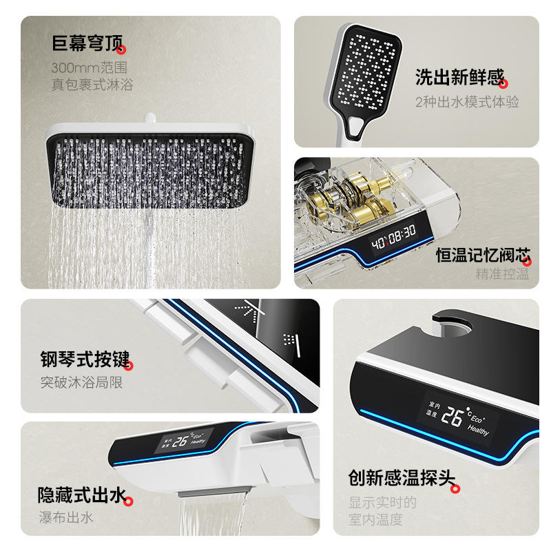 Ensemble de douche moderne 8808 chromé avec pommeau de pluie thermostatique et douchette à main pour salle de bain