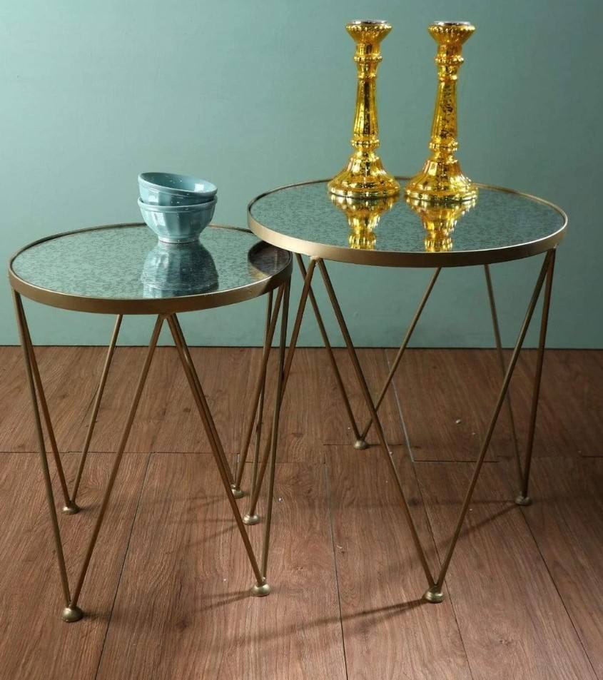 Table d'appoint moderne, lot de 2 meubles décoratifs pour maison, hôtel, restaurant, couleur or, design élégant, tables basses en métal pour le thé en fer