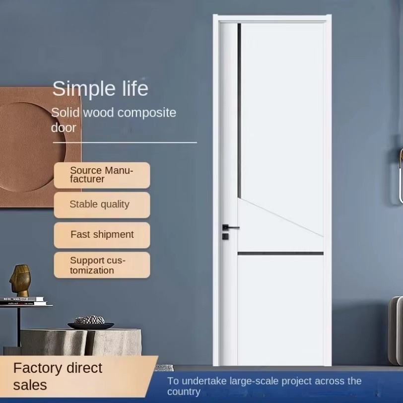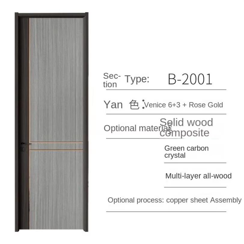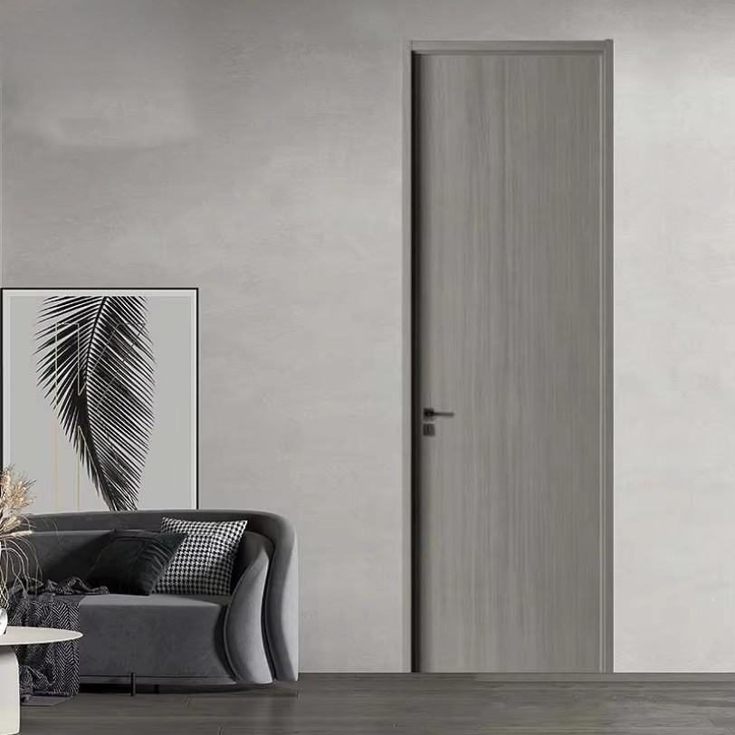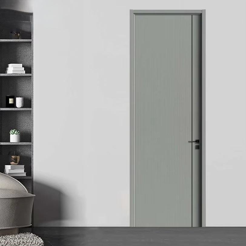 Porte intérieure à battant silencieuse moderne, fabrication directe d'usine, bois massif composite avec finition polymère pour chambre à coucher ou pièce très étroite