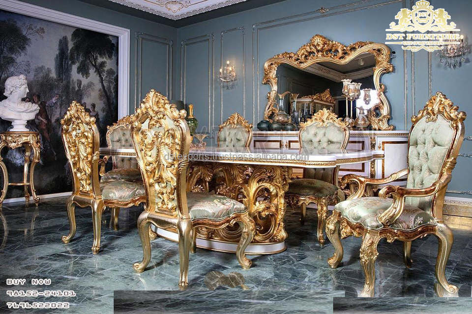 Ensemble de table à manger 6 places sculpté en argent moderne