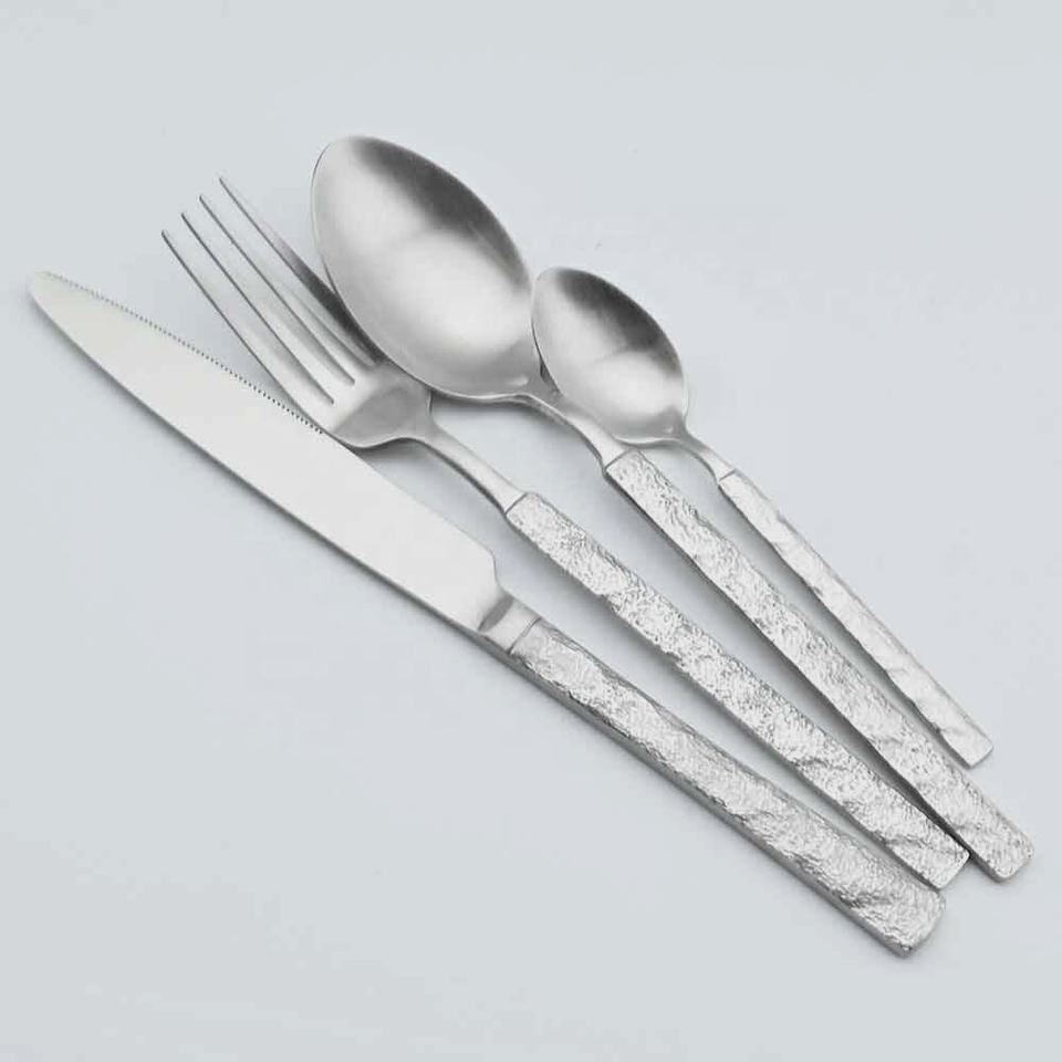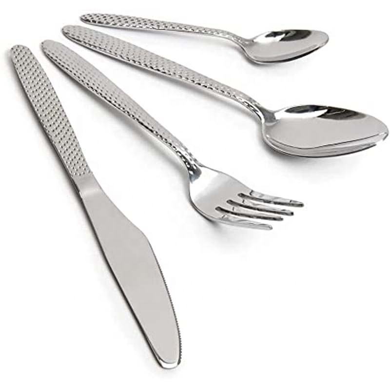 Argent moderne Personnaliser Épais Plat Designer Poignée Design Royal Luxe Élégant En Acier Inoxydable Martelé Couverts