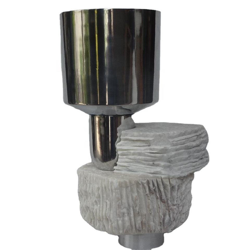 Vase de table moderne en aluminium moulé finition argentée, artisanat métallique, décoration de table, vase de table moderne en métal et marbre, décoration d'intérieur