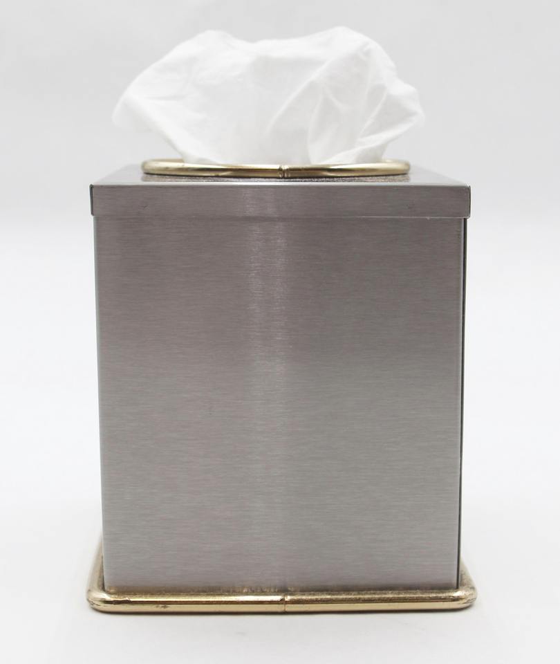 Boîte à mouchoirs carrée en métal finition argentée moderne, idéale pour les bureaux, les salles de réception, les salles de conférence et les postes de travail, en provenance d'Inde