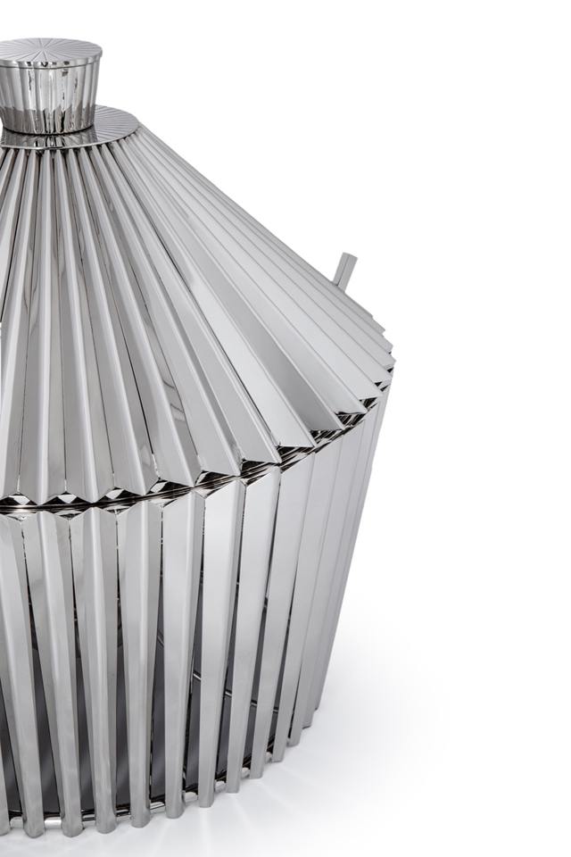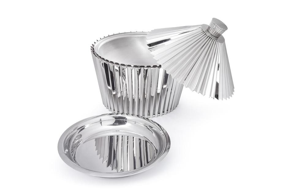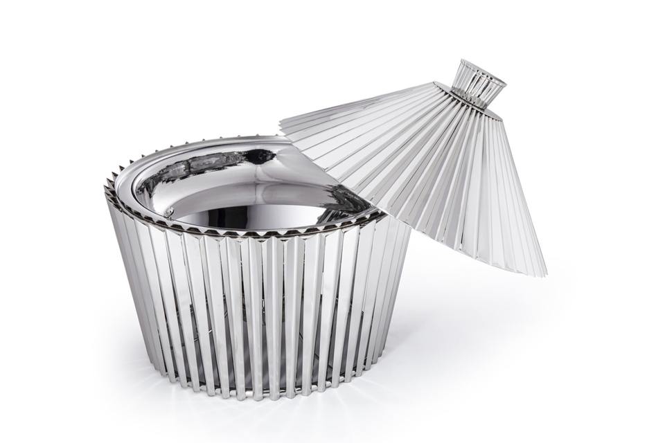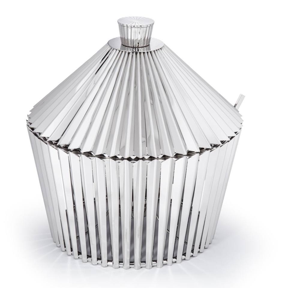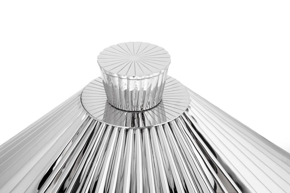 Plat de buffet moderne en acier inoxydable massif argenté, avec couvercle conique, design géométrique de luxe, écologique et durable, pour hôtels et mariages