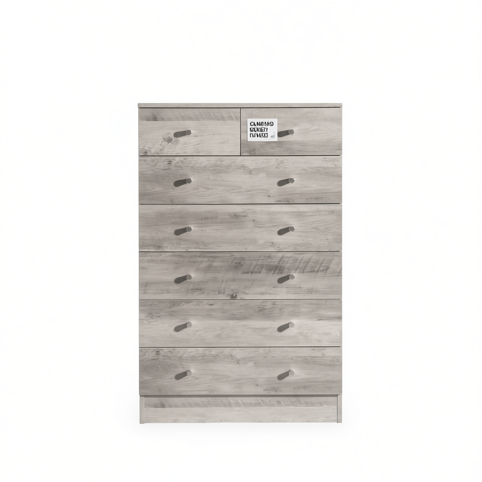 Commode moderne simple à 7 tiroirs en bois gris pour chambre à coucher, autoportante