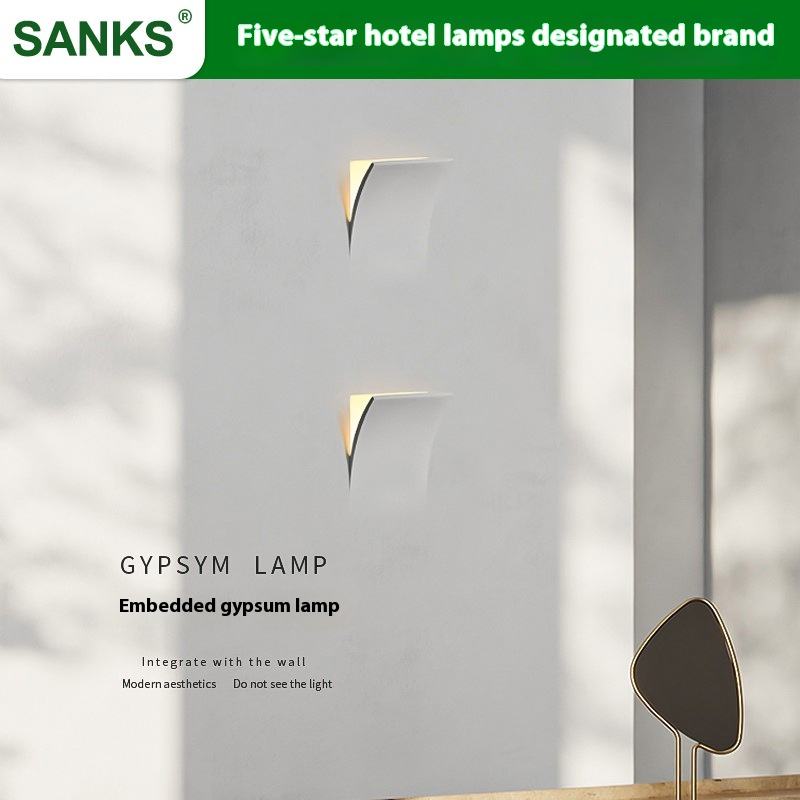 Lampe de chevet moderne et simple pour chambre à coucher Source de lumière LED en plâtre pour le mur de fond de la maison Art de la lampe murale