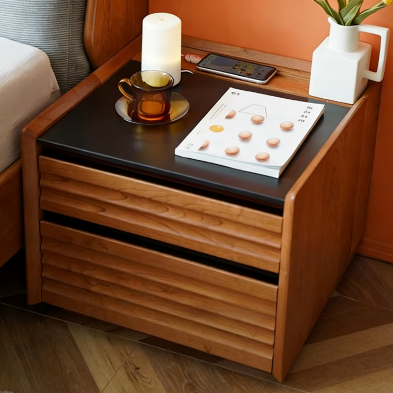 Chevet moderne et simple en bois de cerisier, design cube de sucre massif, dalle rocheuse, style nordique japonais, meubles de maison