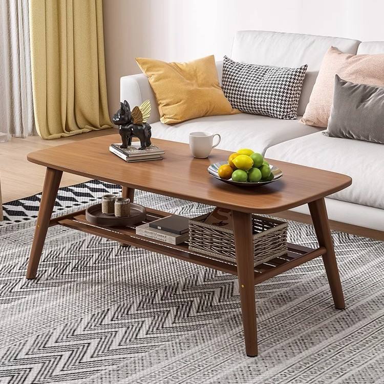 Table basse moderne simple à double couche en bois massif nouveau modèle de table à thé de ferme pour petit appartement maison salon meubles