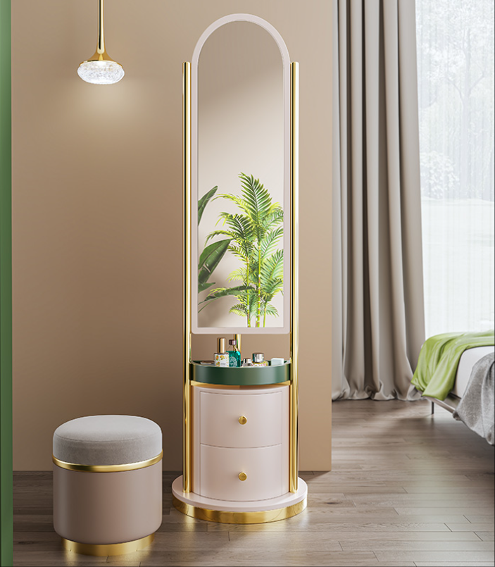 Coiffeuse Moderne Simple en Fer Forgé Artistique pour Petit Appartement avec Chaise et Miroir