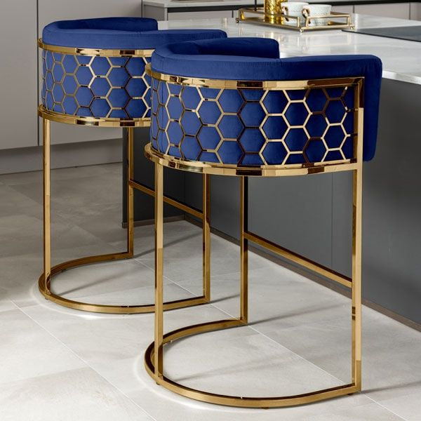 Tabourets de bar modernes et simples en velours à pieds hauts Chaises de comptoir hexagonales pour salle à manger Meubles de salon Hôtel Party Event Club