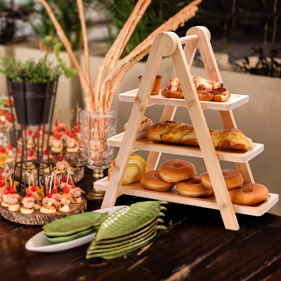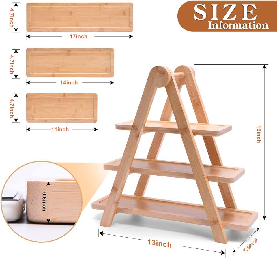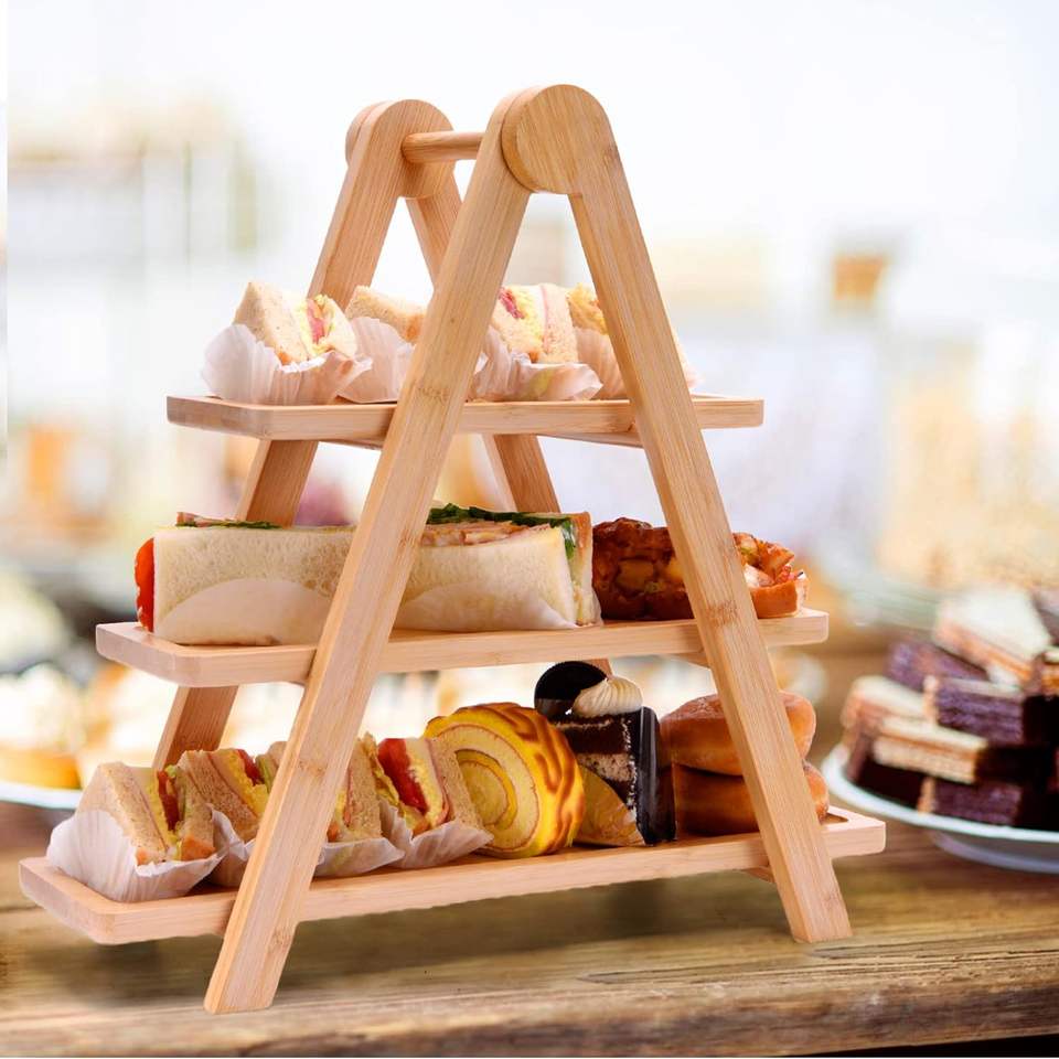 Plateau de service en bois à 3 niveaux, simple et moderne, pour gâteau et snack, présentoir pour fête et Thanksgiving