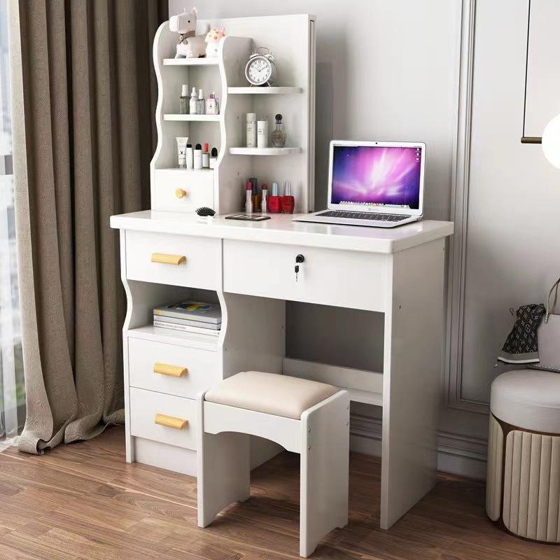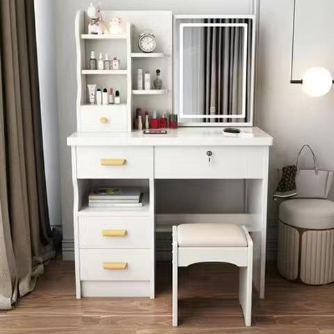 Coiffeuse Moderne, Simple et de Luxe pour Petites Chambres de Filles, avec Meuble de Rangement Intégré et Miroir Caché, en Bois