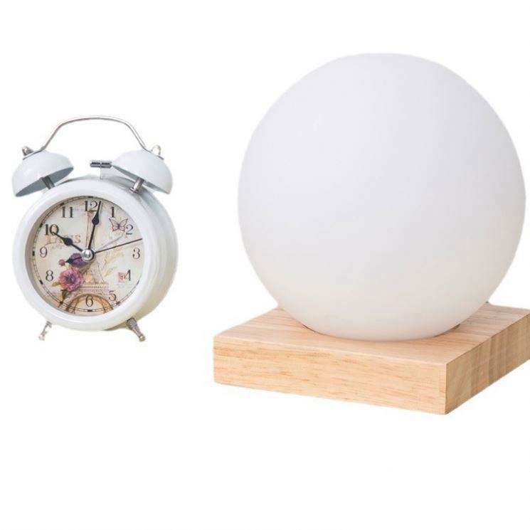 Lampe de table ronde en bois moderne simple en verre blanc lait créative à gradation chaude veilleuse bureau chambre à coucher décoration de lit