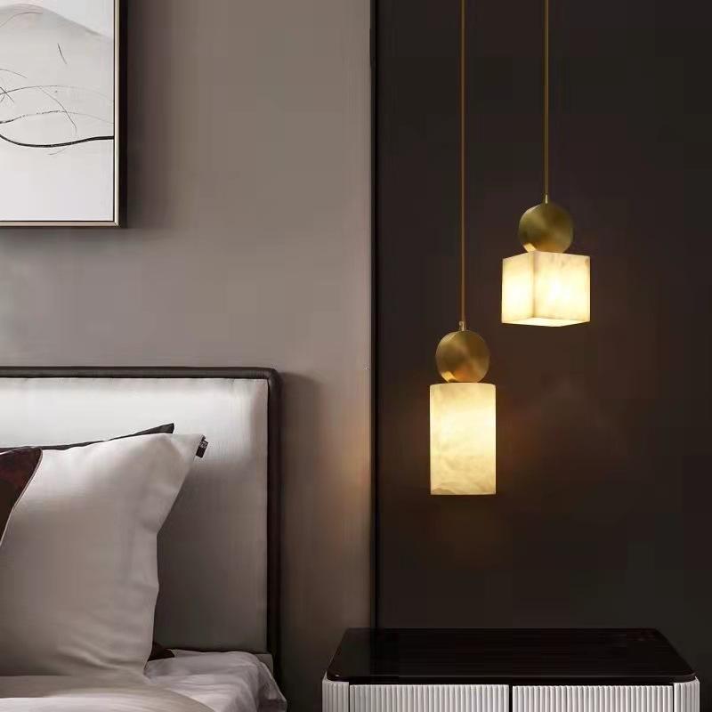 Lampes suspendues LED modernes et simples en marbre lunaire pour la décoration de la chambre à coucher, petite surface, chevet, avec un angle de faisceau de 360 degrés, blanc chaud