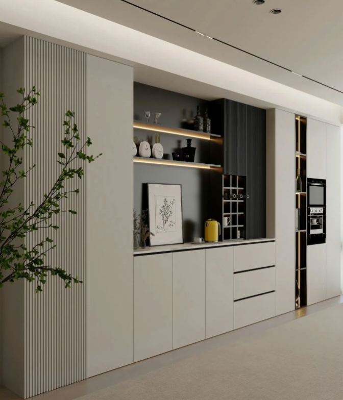 Buffet moderne simple en bois massif casier de stockage de vin de luxe armoire murale intégrée pour salle à manger maison pour le stockage de salon