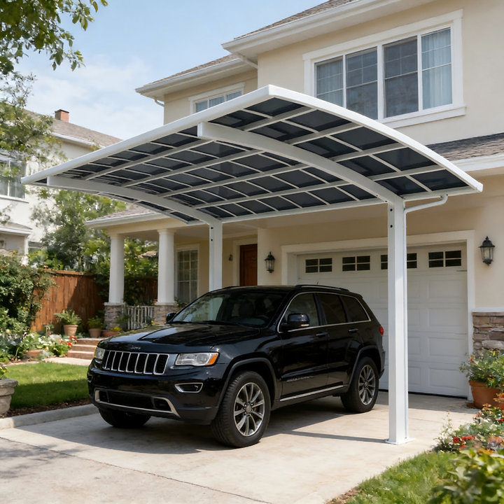 Abri de voiture moderne simple en aluminium et polycarbonate, imperméable, à structure cantilever, pour une seule voiture, avec un design durable