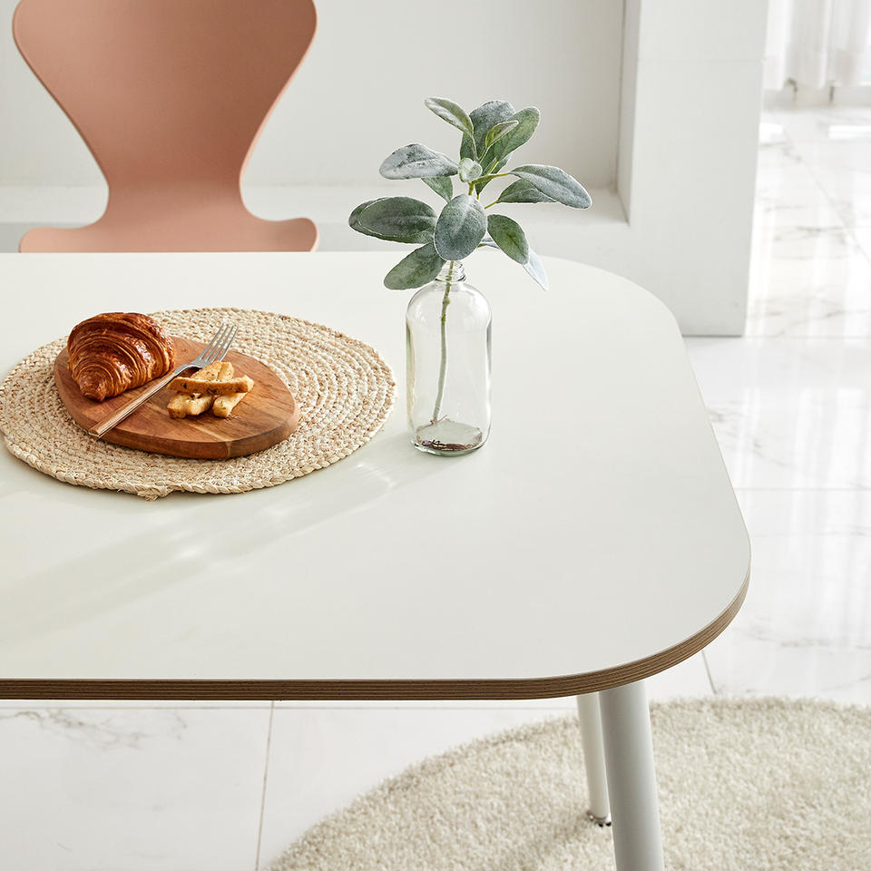 Bens — ensemble de table à manger blanc, dessus rectangulaire en acier blanc, avec bord rectangulaire, moderne et Simple