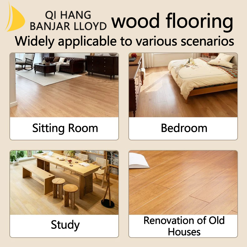 Plancher en bois stratifié moderne et simple de 8 mm, grain de bois, installation par clic, finition brillante, traitement de surface mat