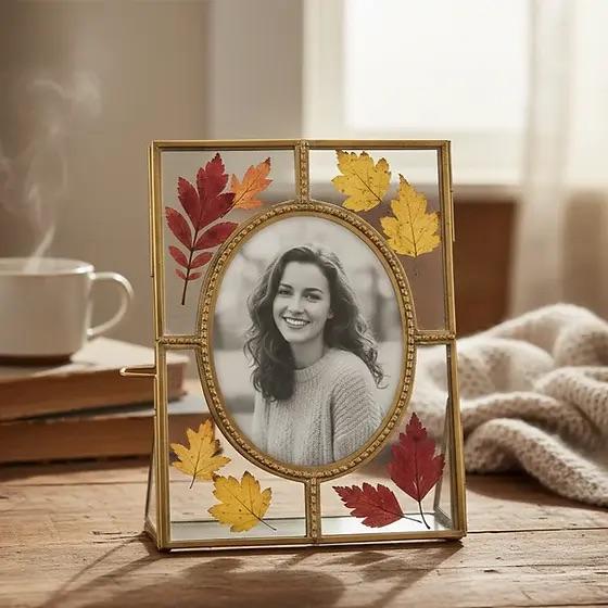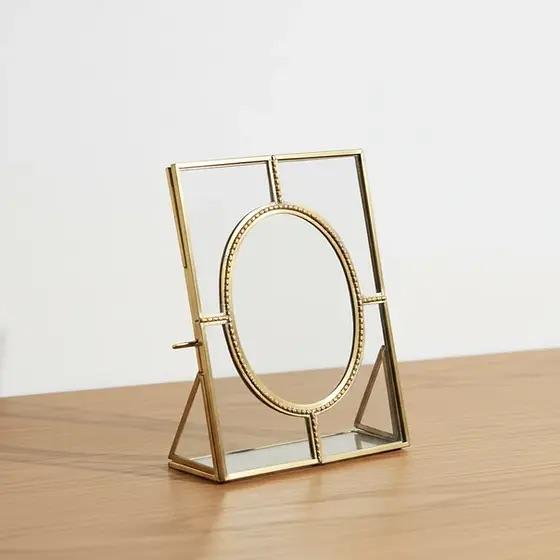 Cadre photo en laiton à double vitrage, simplicité moderne, avec des motifs personnalisés pour la décoration de table à la maison