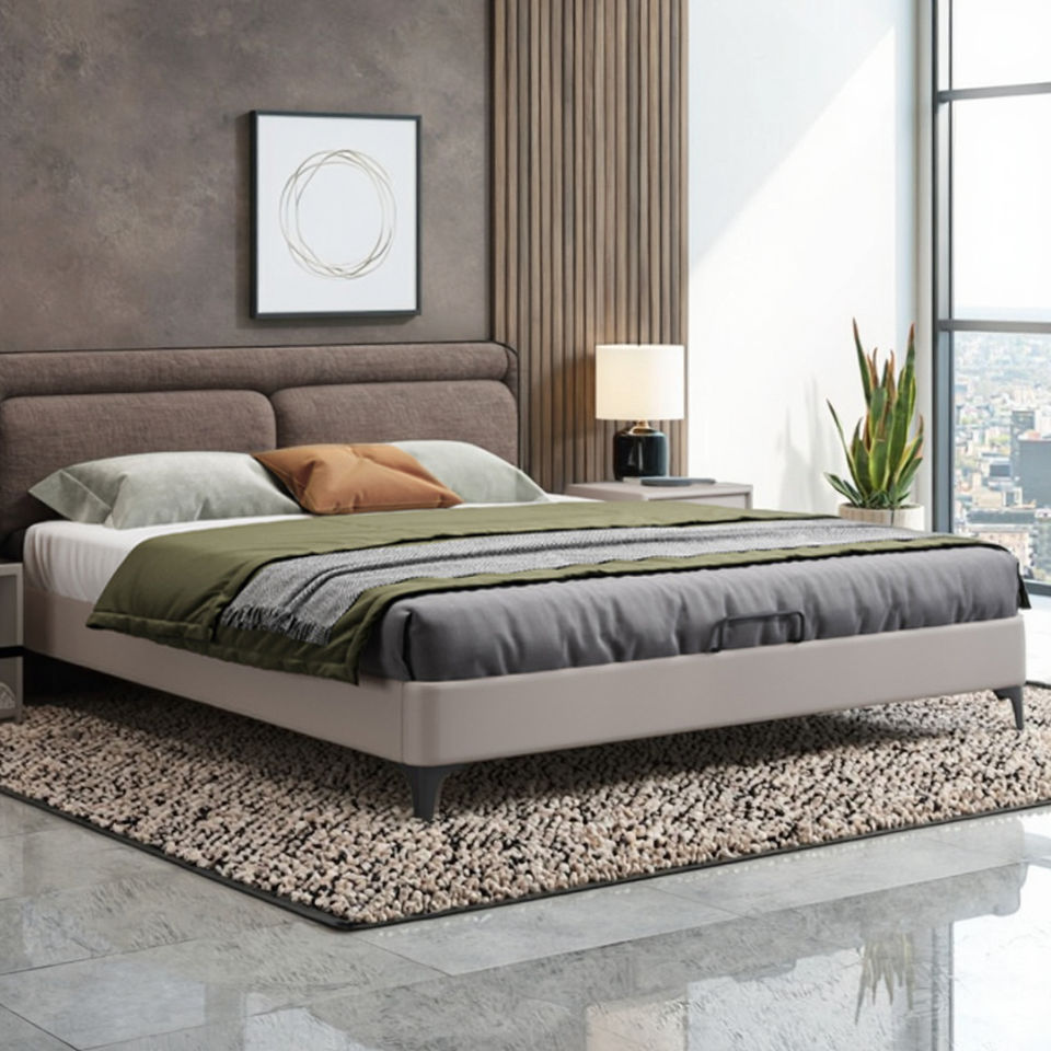 Lit moderne simple et double avec cadre de chambre à coucher en tatami en bois massif Rembourrage souple sans suspension de chevet Conception de lit en rangée avec baie vitrée