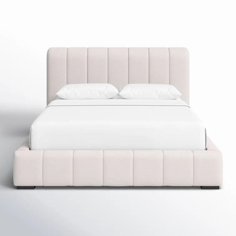 Lit simple moderne tapissé double ou king tapissé Couverture en tissu de velours doux avec cadre en bois pour le rangement de la chambre à coucher à la maison