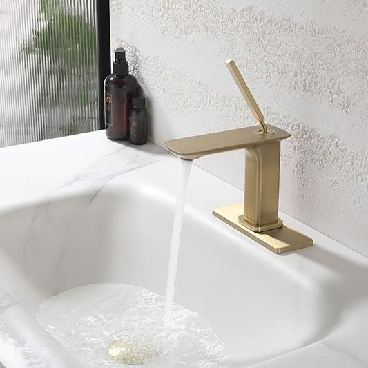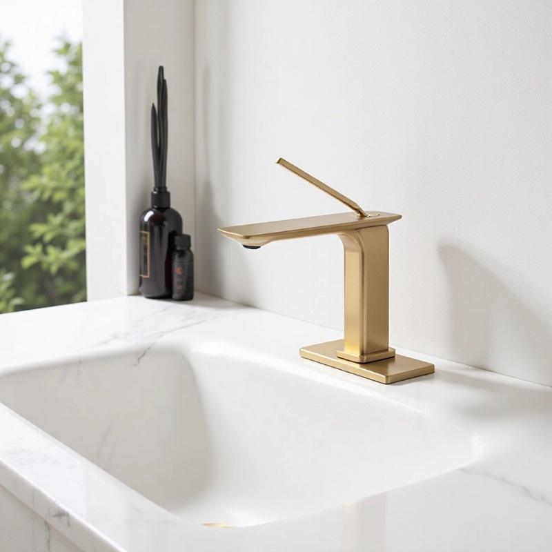 Robinet mitigeur de lavabo moderne en laiton à poignée unique, design contemporain, montage monotrou, pour salle de bain, finition brossée, céramique, WC