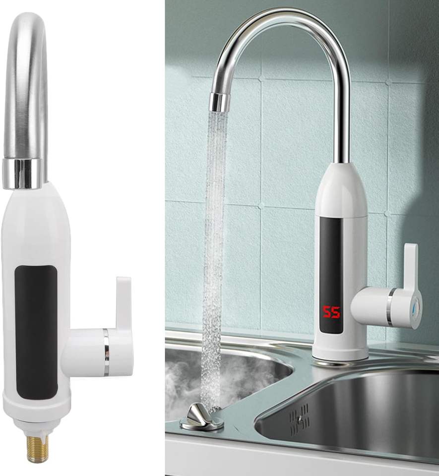 Robinet de cuisine électrique moderne à poignée unique avec chauffage instantané, affichage LED, contrôle thermostatique, construction en acier inoxydable